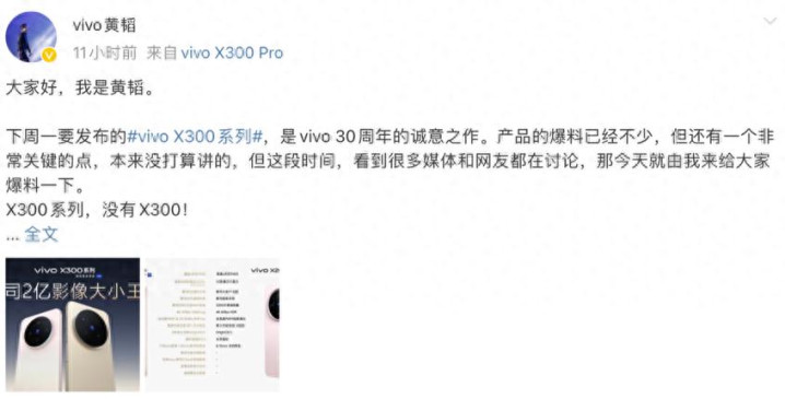 尤其是vivo产品副总裁黄韬在微博上的那句:“X300系列,其实没有X300”,直接让网友炸开了锅——这句话背后的含义,远比表面复杂得多。